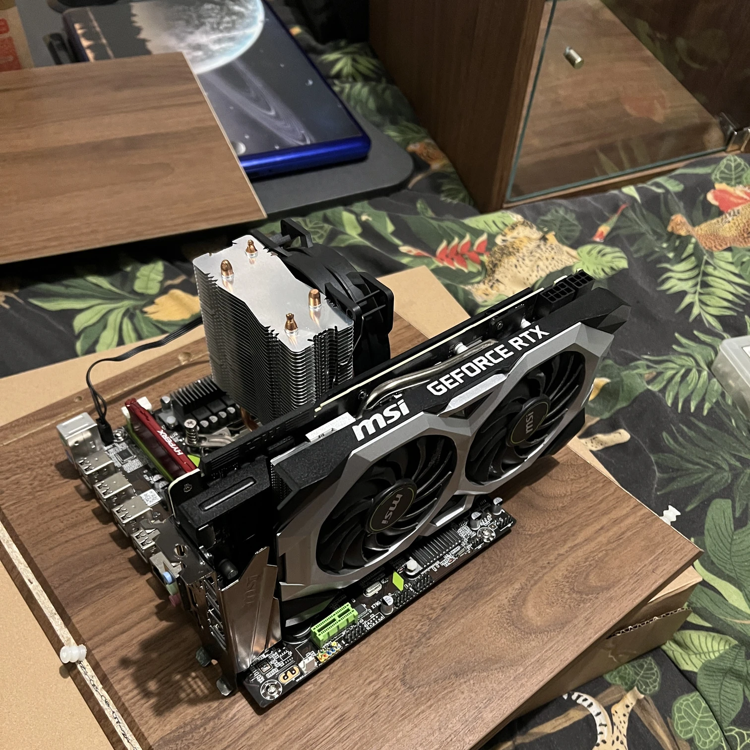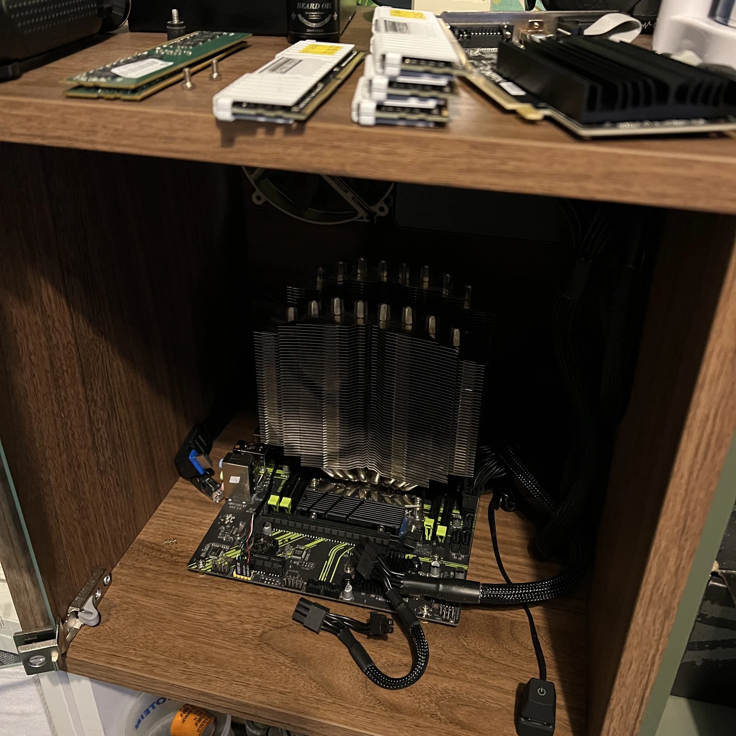 I also removed the GPU as that was required elsewhere, so I installed a Radeon 5400 series purely to have display output in case it was needed. You may see some RAM at the top of the above pic, which I had acquired from a favour. I was in the process of installing and testing this 64GB kit, but came across constant crashes. Instinctively, I ran memtest and straight away got plenty of errors.🤦♂️ So I removed the sticks, cried a little inside and reinstalled the old 32GB kit - which is plenty for now I guess.